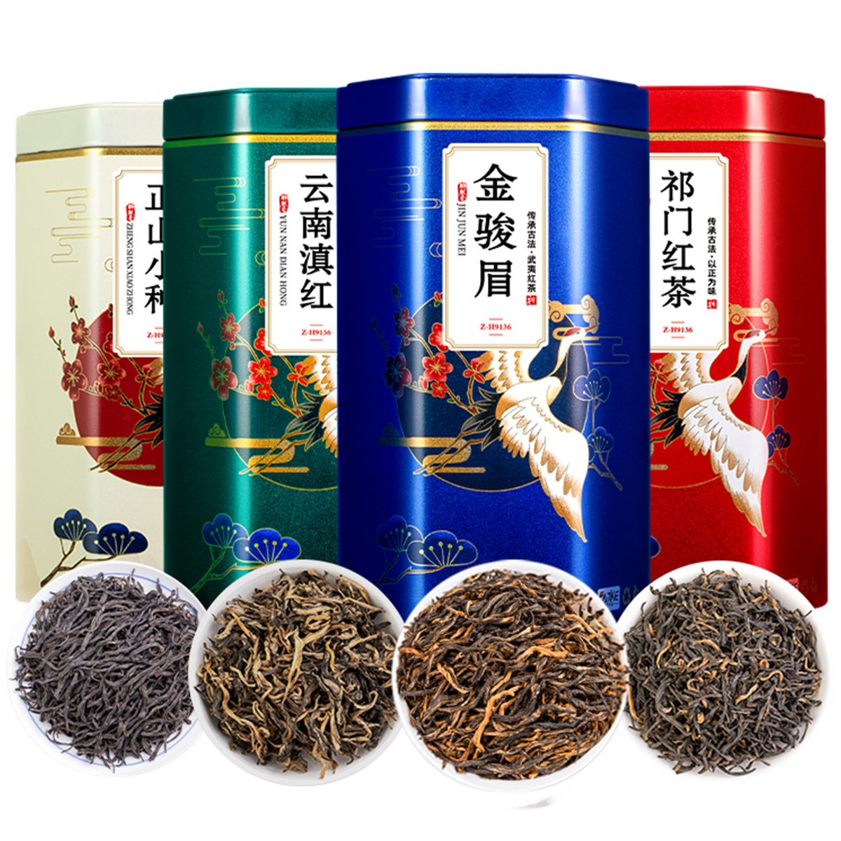 醉然香金駿眉茶葉特級正山小種祁門紅茶云南滇紅罐裝紅茶四寶組合125g*4罐