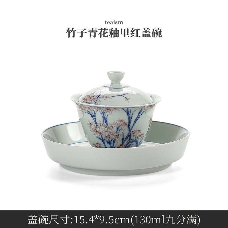 藝 仿古青花釉里紅蓋碗茶杯干泡功夫茶具單個青花手繪釉畫彩不燙手三才泡茶碗